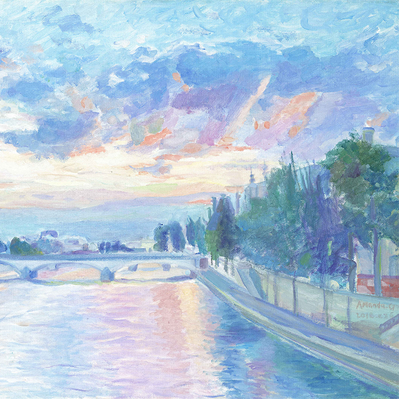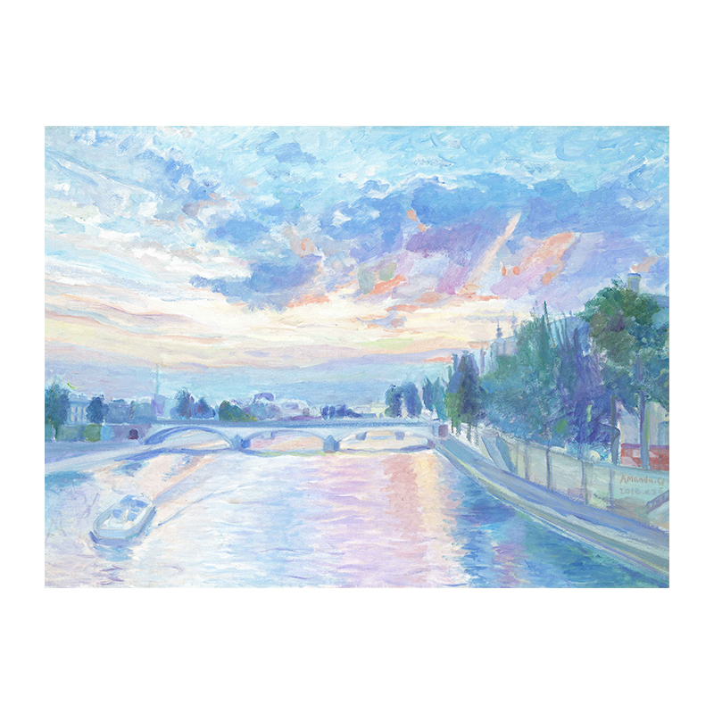 (time-limited ex-gratia) Northwestern University graduate student Guo Junpool (sunset on the River Seine) limited edition painting-Taobao