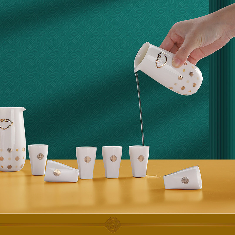 one thousand Letter Wine Glass Wine Glass Wine Pot Suit High-end Chinese Vintron Gift Giving Elders Lead Gift Support Custom