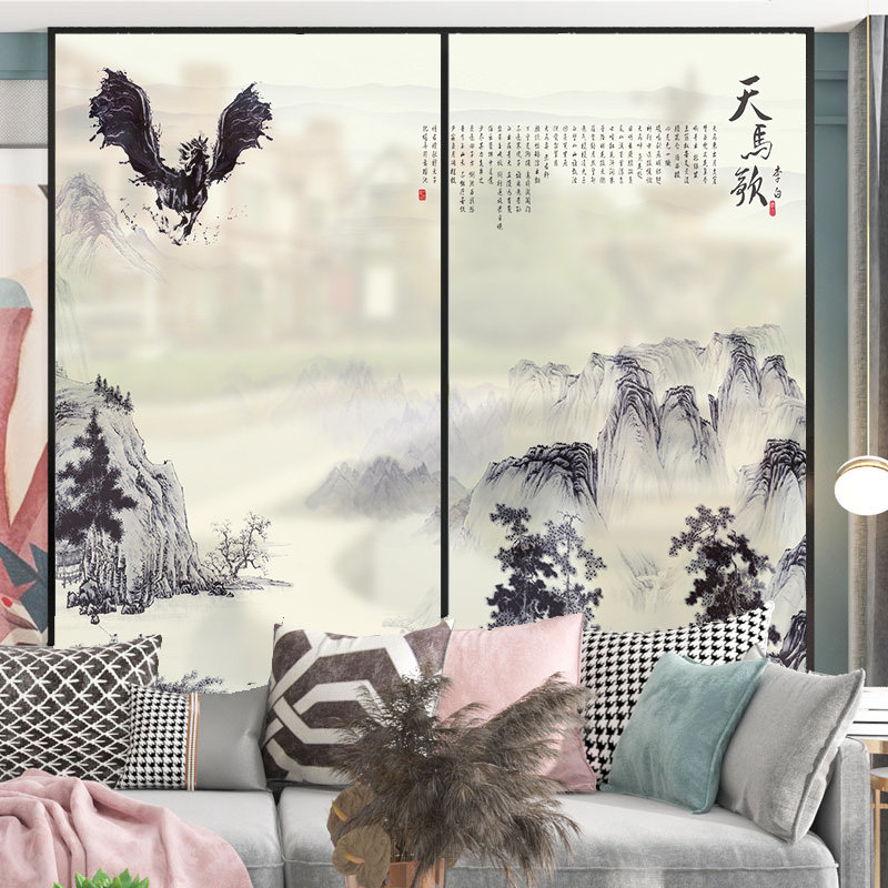 Office window light transmission opaque Opaque Frosted Frosted Glass Sticker Bedroom Bathroom balcony Diaphanous Landscape Painting Cling Film