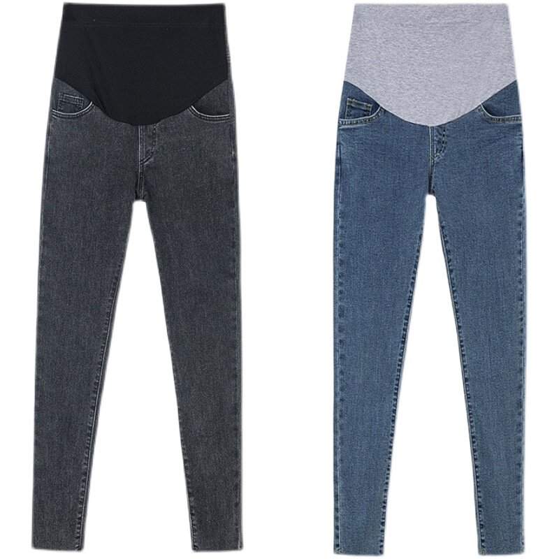 Pregnant women pants small eight-point pregnant jeans female spring and summer high lean elastic tight hair straight coat pants