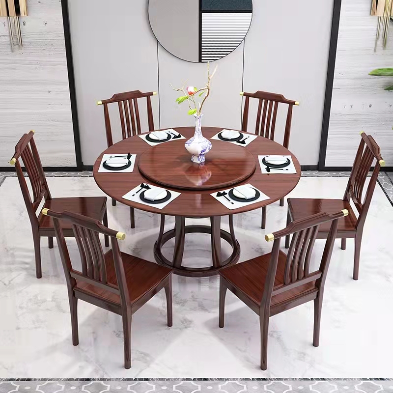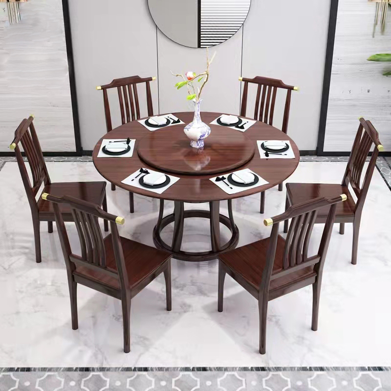 Chinese-style solid wood light luxury round dining table multi-person turntable living room size apartment table and chair combination tea table and chair furniture customization