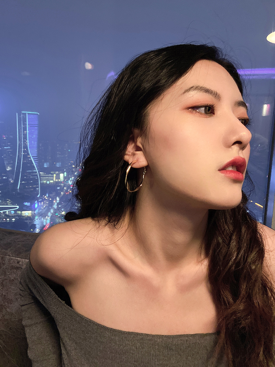 Caring Kiss~French temperament thin spiral twist earrings women's hoop fashion earrings exaggerated earrings