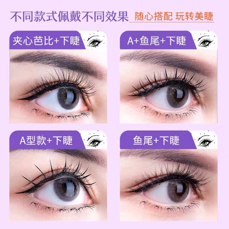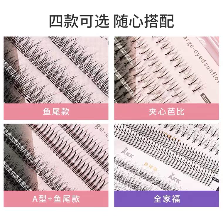 AKK false eyelash female grafting natural fairy hair type fish tail Barbie sandwich with single-cluster root graft simulation self-adhesive