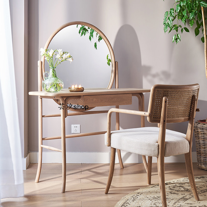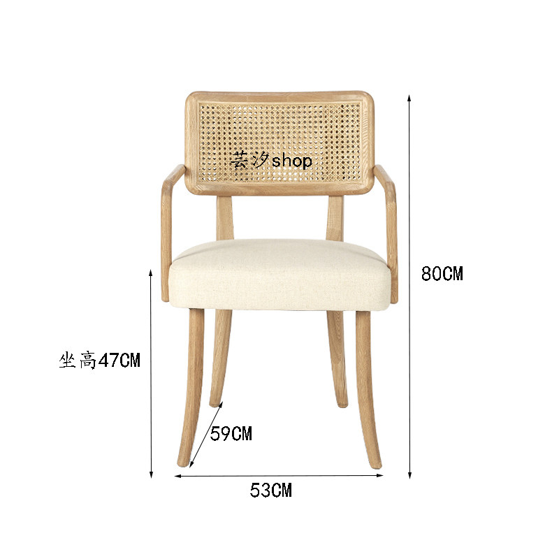 Nordic solid wood dining chair home B&B simple creative design ash armrest complete adult backrest rattan chair