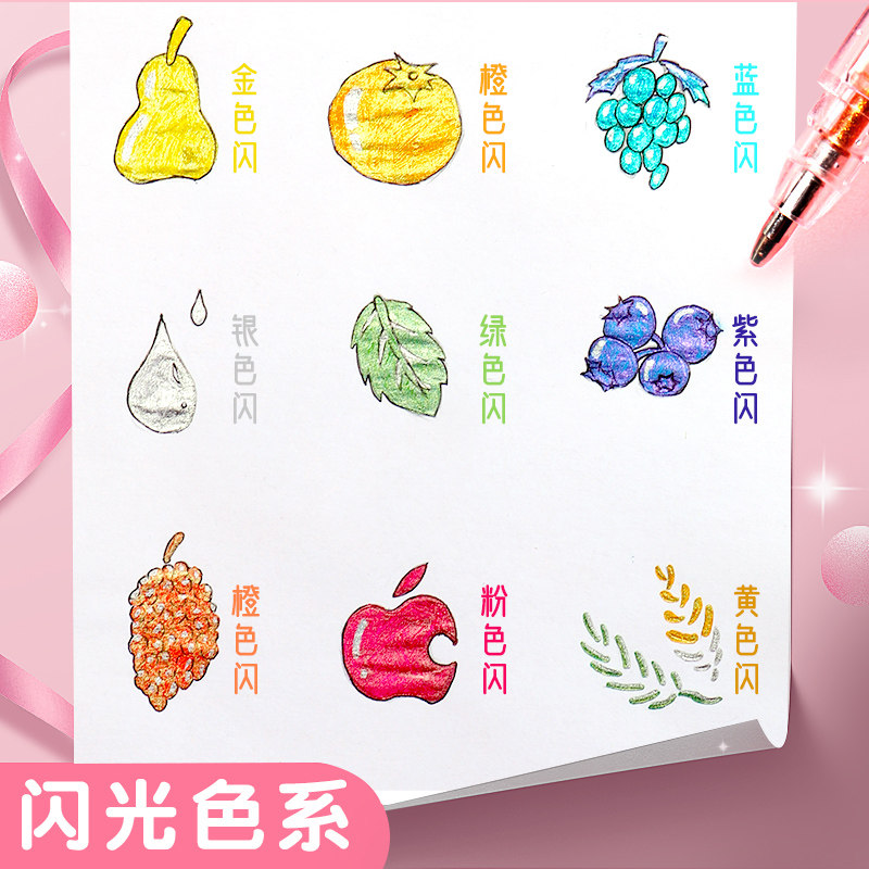 Color flash gel pen shiny highlighter glowing bright crystal quicksand silver light discoloration hand account special pearl key marker pen large-capacity watercolor pen special fluorescent marker pen for making notes