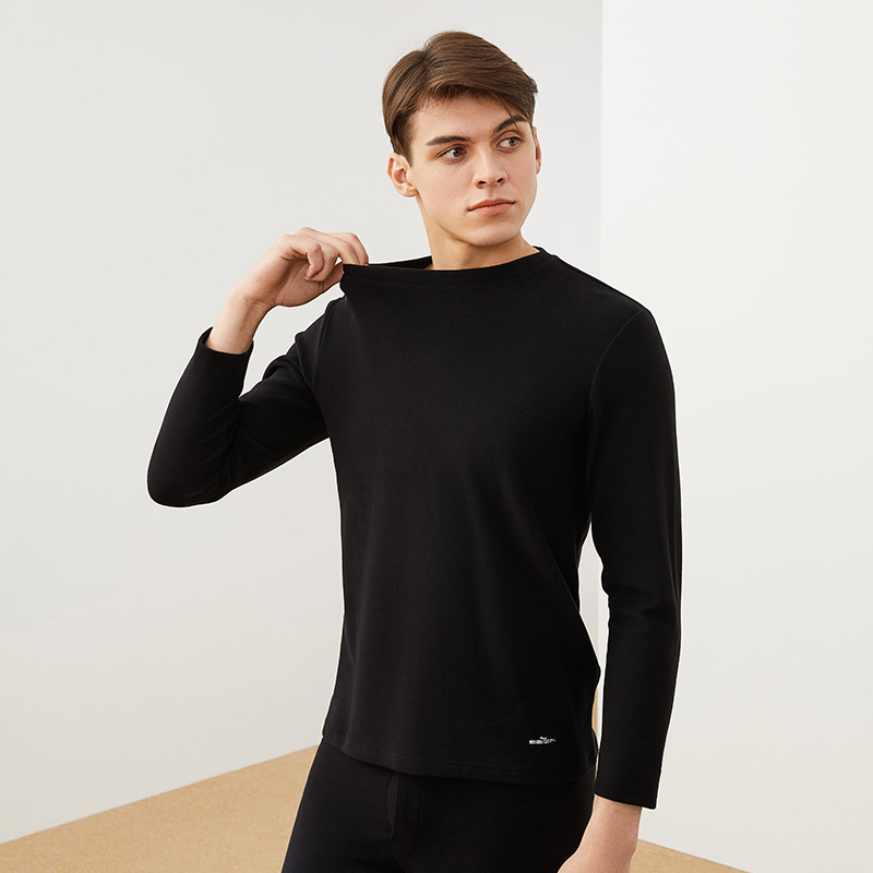Lacquered men's warm lingerie suit Winter delsuede thickened round collar elastic autumn clothes sanitary pants without marks to wear at the bottom