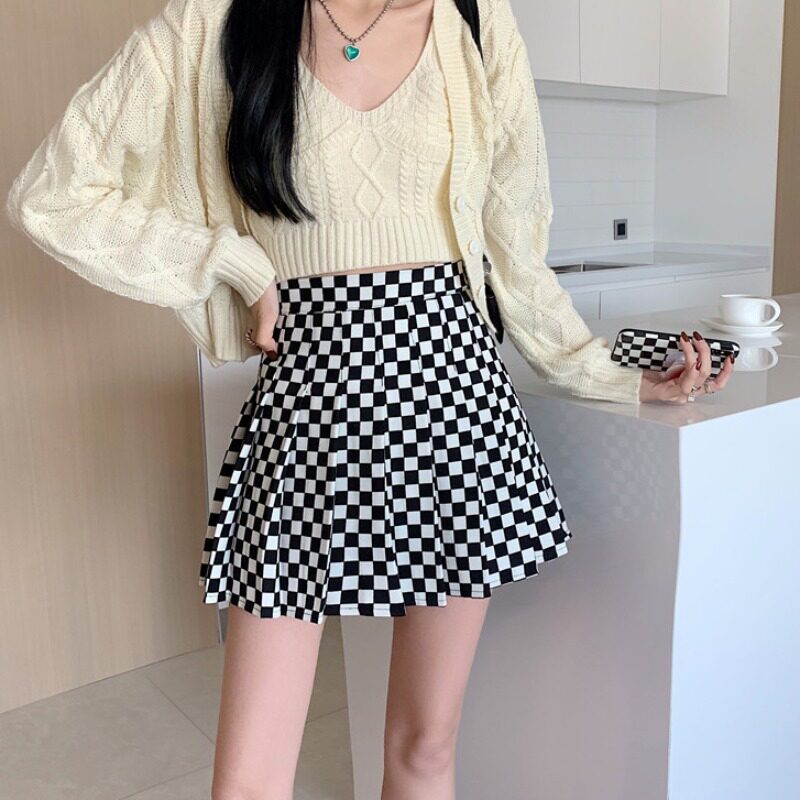 Large size ultra-fiery plexulated skirt Chessboard Plaid half-body dress Women design sensation Little crowdsourced mm sweet and spicy high waist a character slim fit