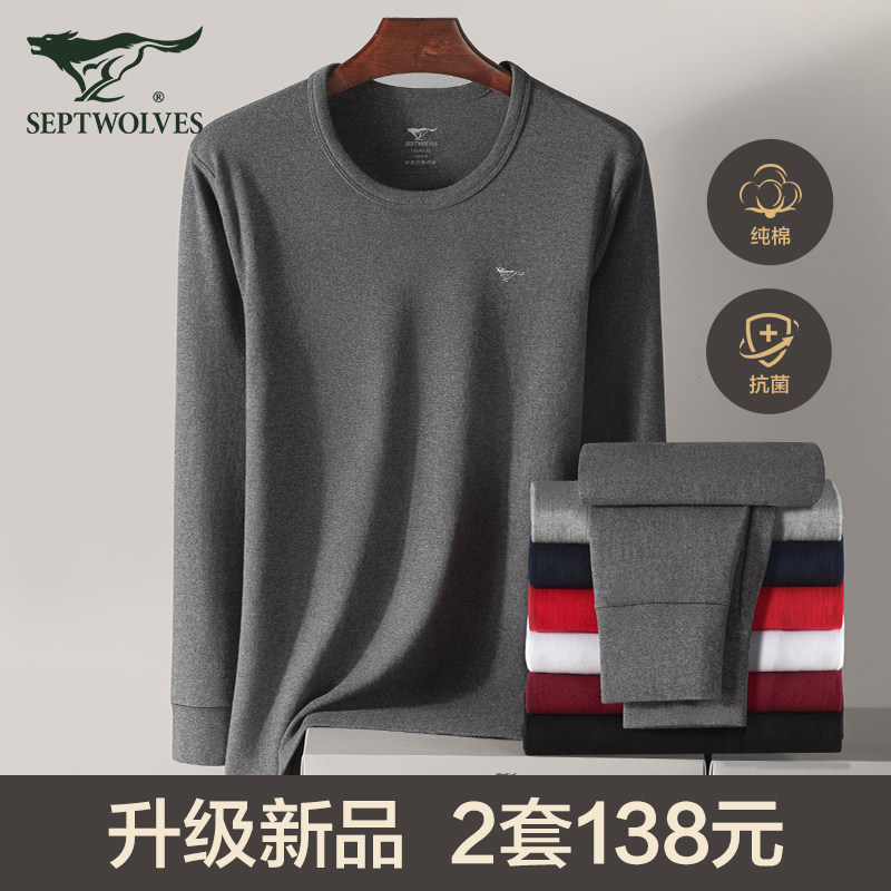 Seven Wolves Fever Coat Men's Pure Cotton Slim Cotton Sweatshirt Boy Sanitary Pants Full Cotton Men's Autumn Clothes Pants Suit Winter