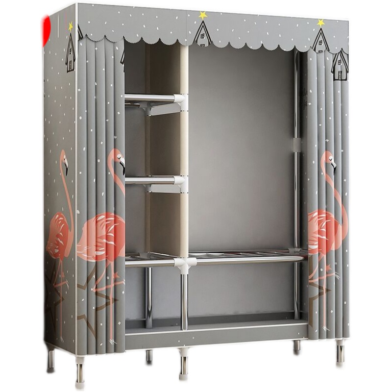 Simple Wardrobe Household Bedroom Clothing Cabinet All Steel Frame Thickness Rental Room Hanging Closet Steel Pipe Strong Durable