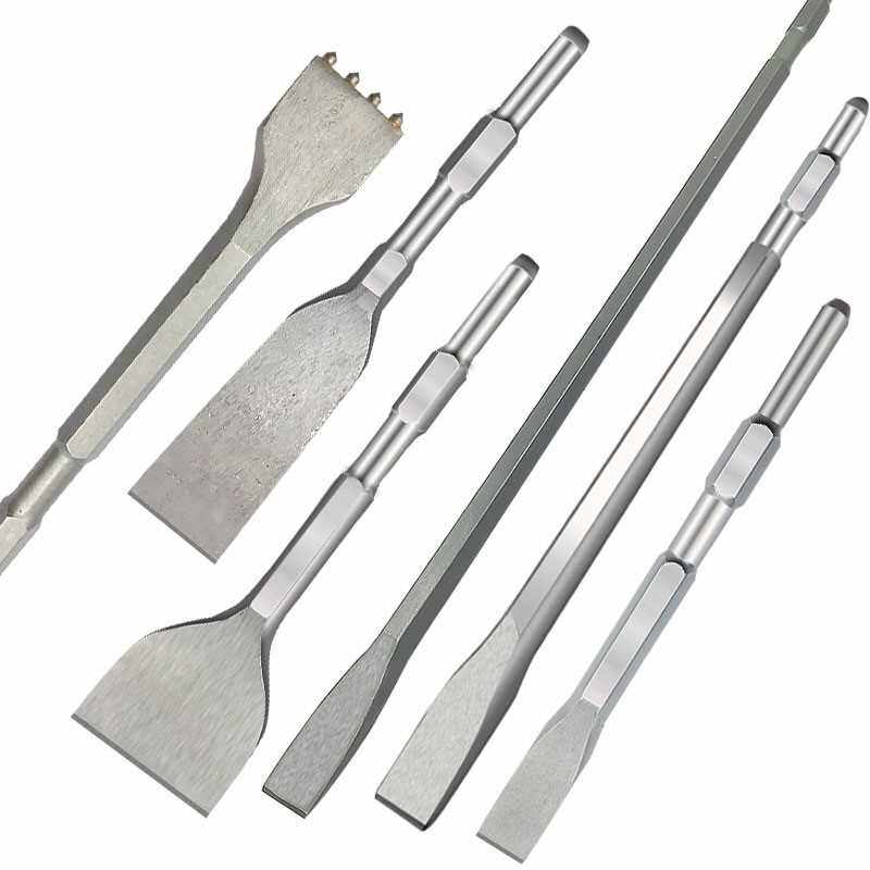 Hexagonal electric pickaxe chisel tile wall gray lengthened and widened 1 meter five-pointed flat shovel 0810 small electric pickaxe drill bit