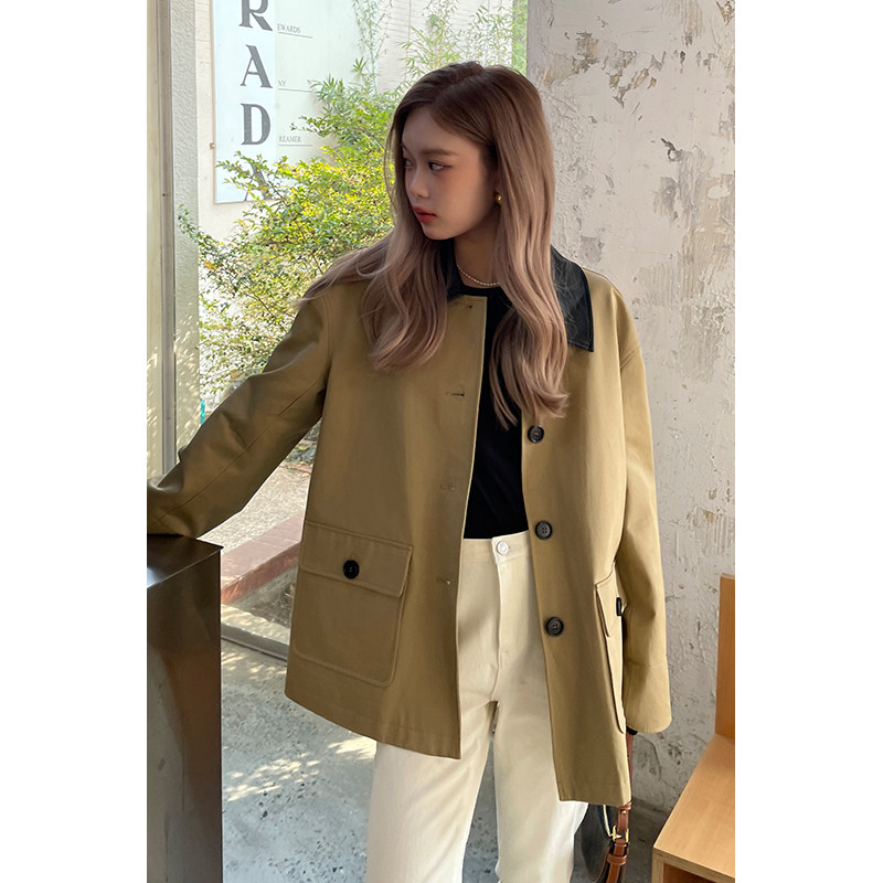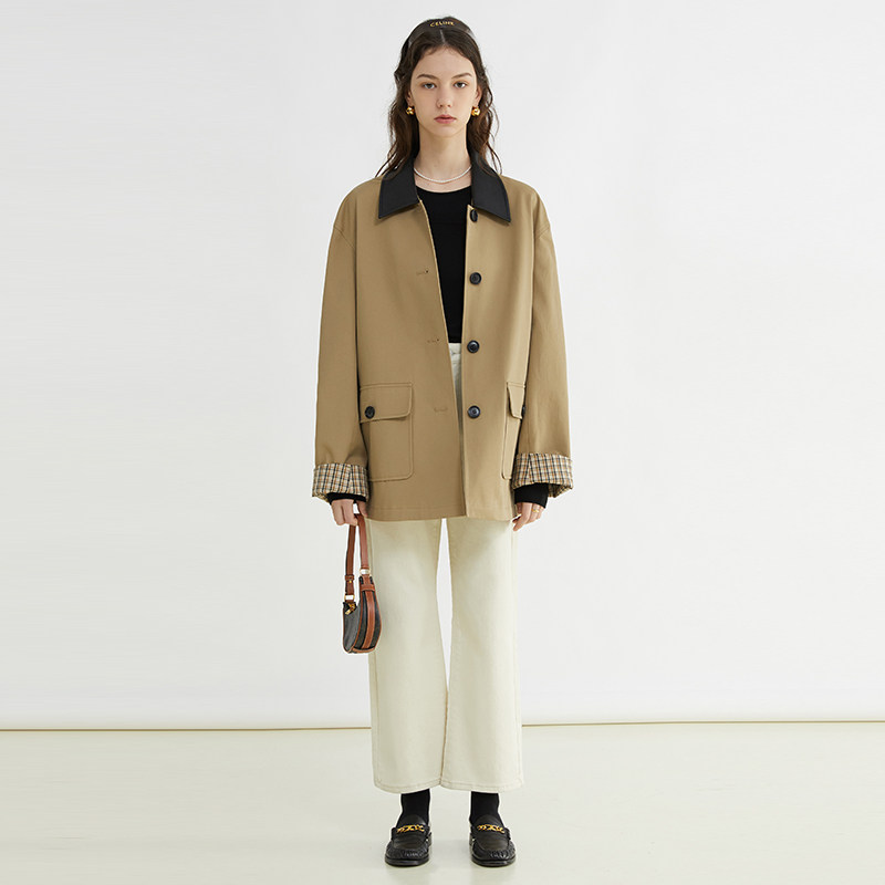 Fanluo 2022 autumn new tooling profile lapel stitching single-breasted short windbreaker coat women's small top