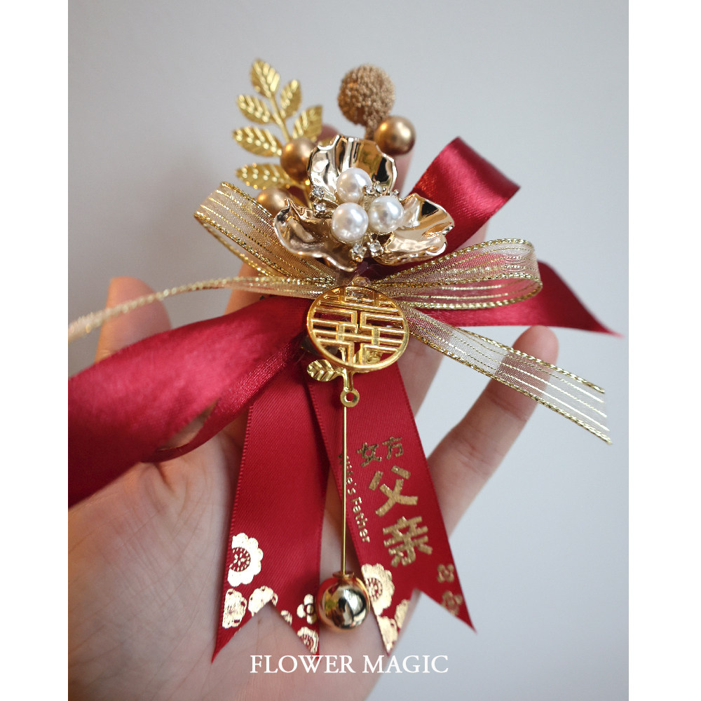 Chinese New Lang Chest Flowers Golden Jade Rankin Gold Leaf Wedding Celebration Supplies Groom Bridegroom Bridal Bridesmaid With Brooding Brooch Customize-Taobao