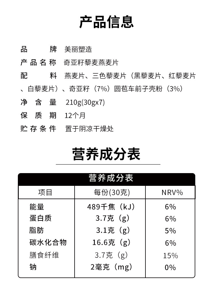 Chia seed oatmeal special instant brewed beverage for weight loss non-sugar-free low-fat cereal breakfast satiety meal meal replacement powder