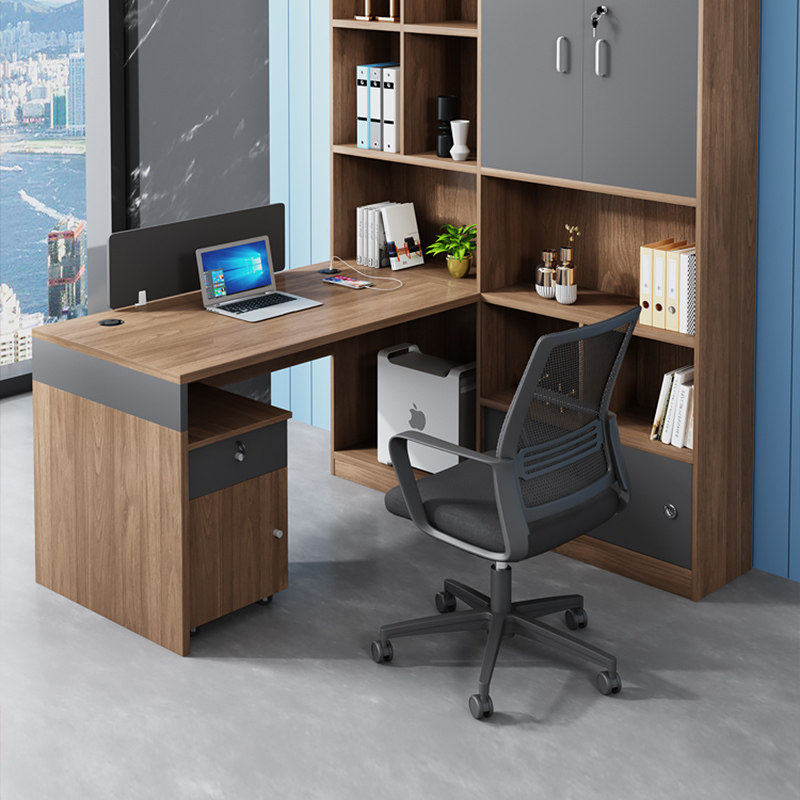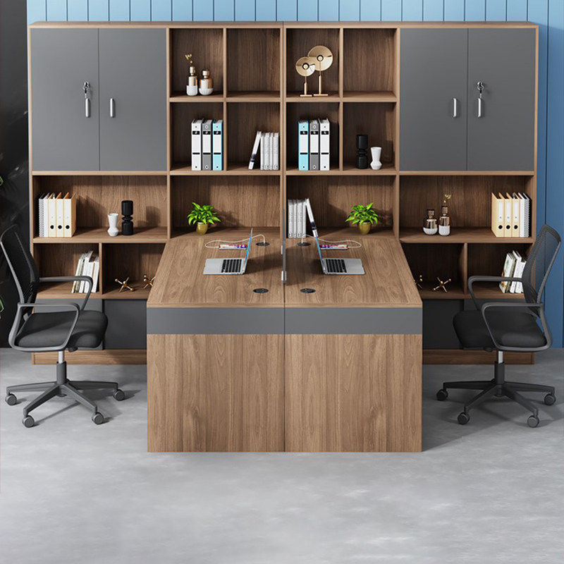 Financial desk staff table and chairs combination double to sitting office head desk with high cabinet accounting desk