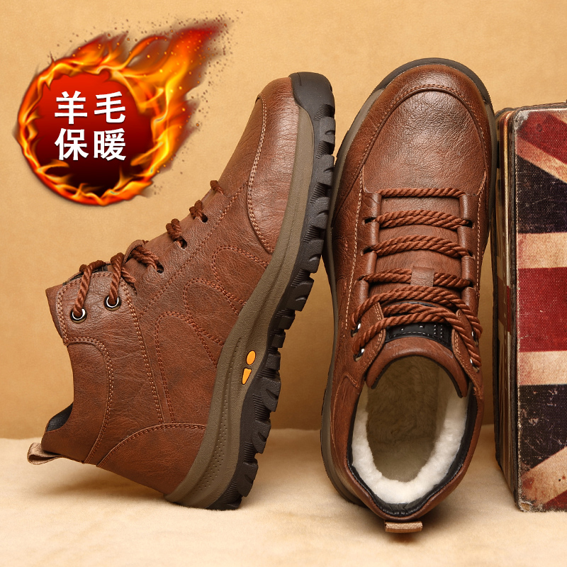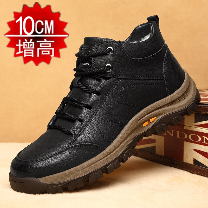 Inner heightening men's shoes 10cm genuine leather winter invisible heightening shoes men's warm non-slip outdoor shoes dad leather shoes