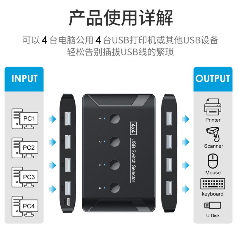 Jimier USB Keyboard Mouse Printer shares USB2 0 Switch 4-4 out 4 print switch