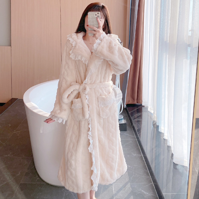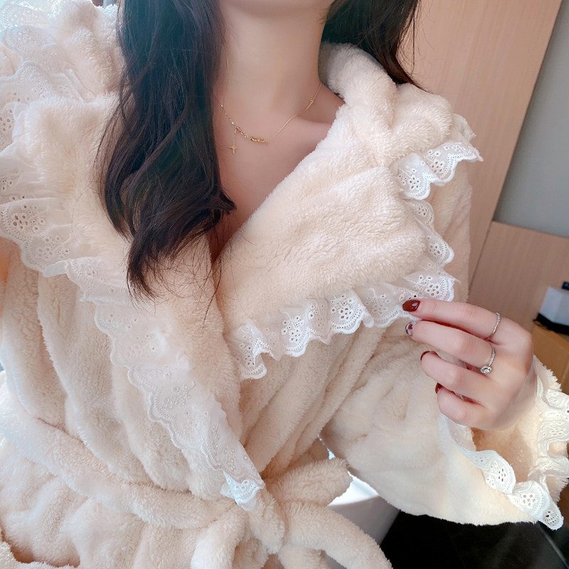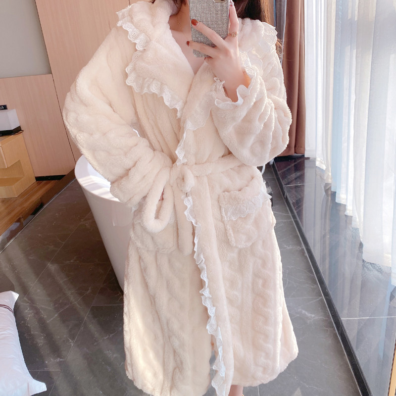 2021 New Sleepwear Women's Autumn Winter Sweet And Sexy Coral Suede Thickening Long Version Pyjamas Winter Bathrobe home clothes