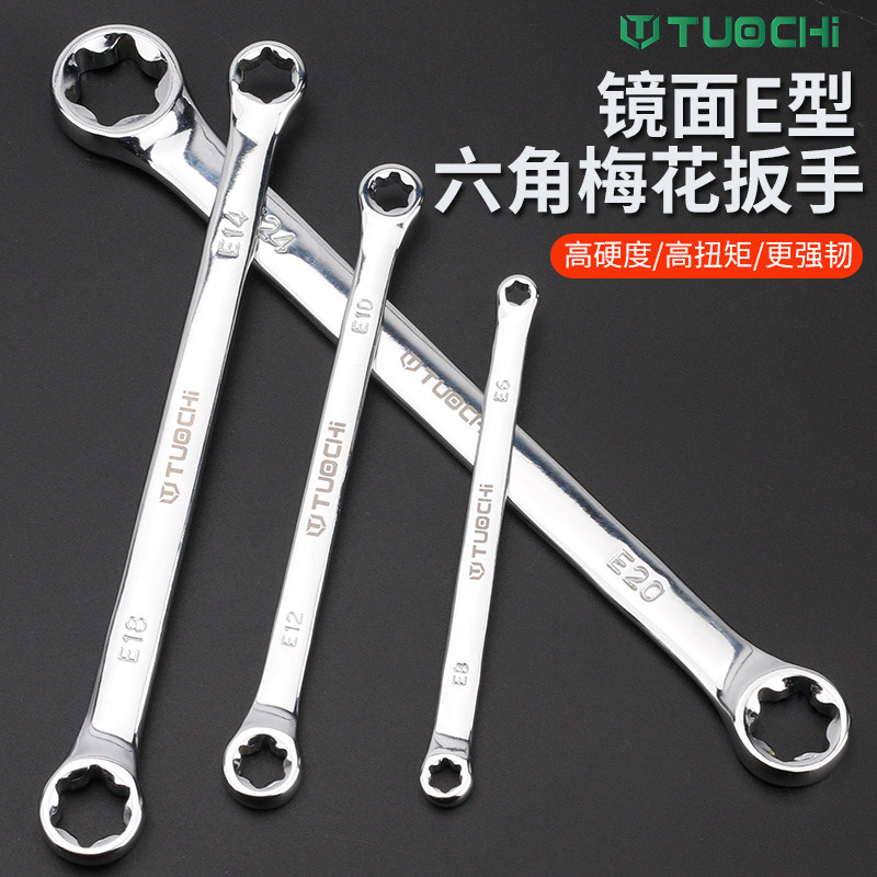 E-type double head six-flower type wrench e type hexagonal plum-shaped wrench inner 6 flower dual-use board hand tool E6-E24mm