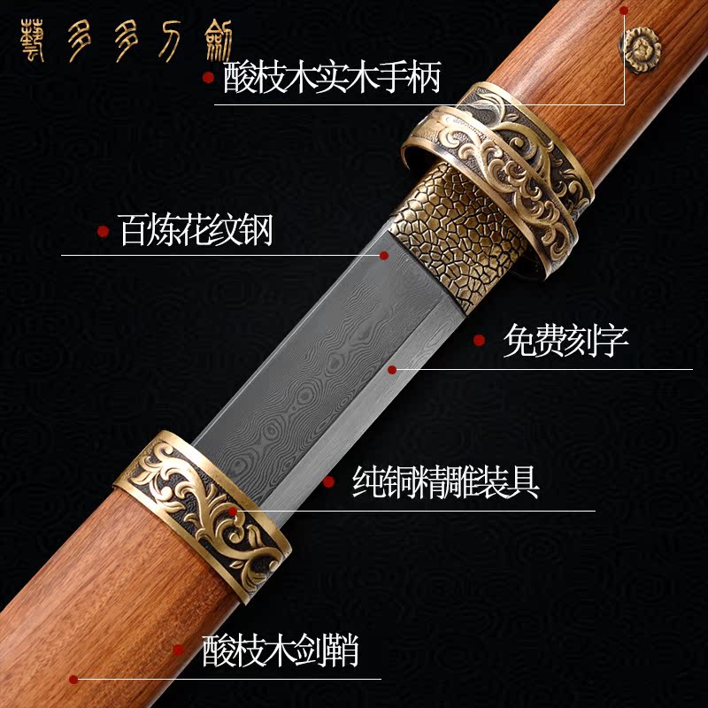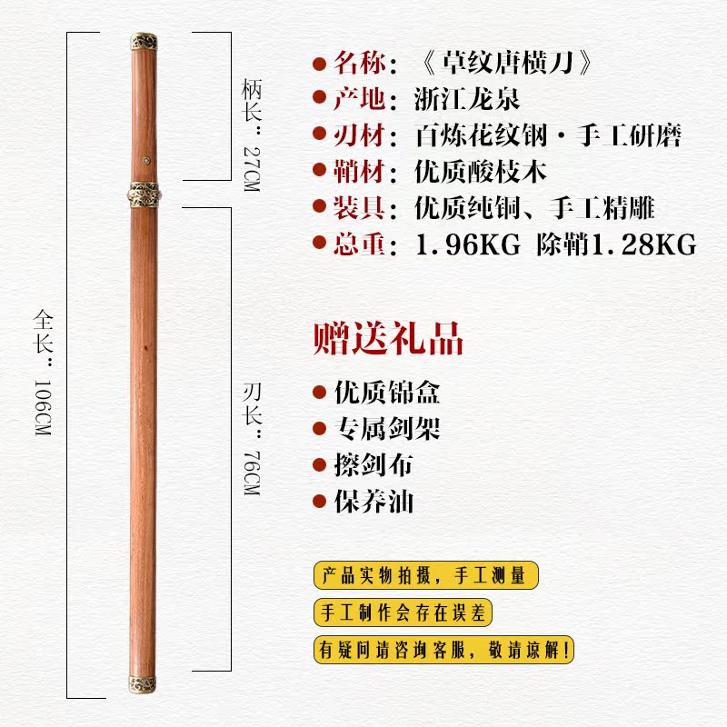 Longquan long version one-piece pattern steel Tang Hengdao town house sword self-defense hard sword Tang sword cold weapon sword not edged