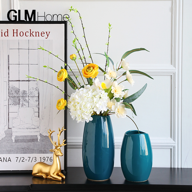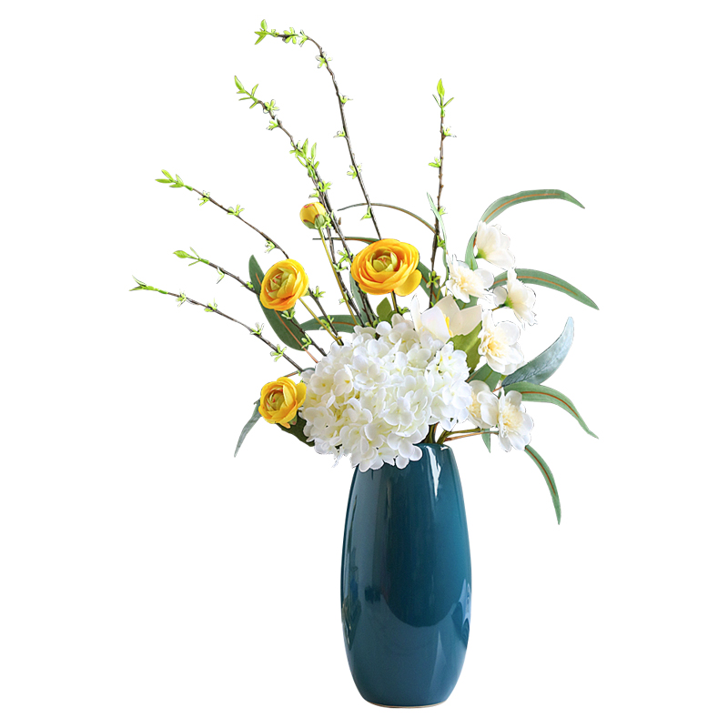 Chunlai series design bouquet Platycodon grandiflorum, small goose egg vase Chunlai series design bouquet snow willow style, large goose egg vase