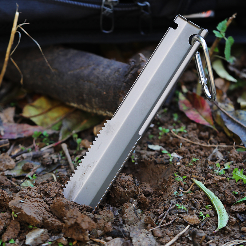 Titanium craftsman outdoor pure titanium multi-functional soil extraction shovel sawtooth hand shovel camping travel ultra-light portable gardening shovel