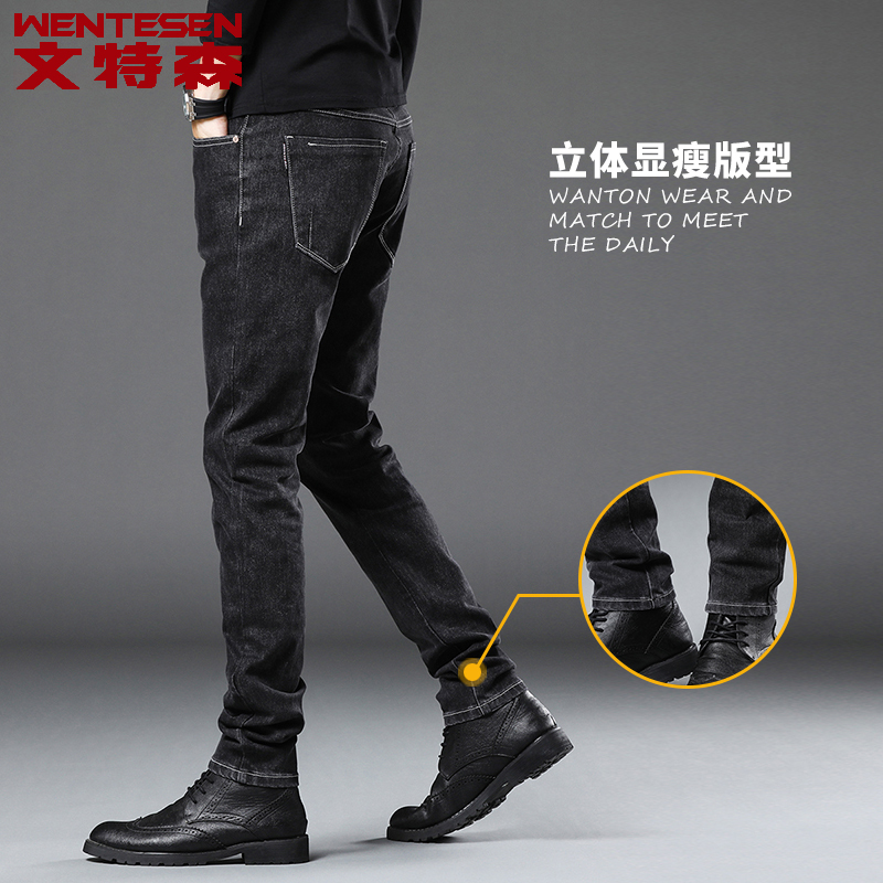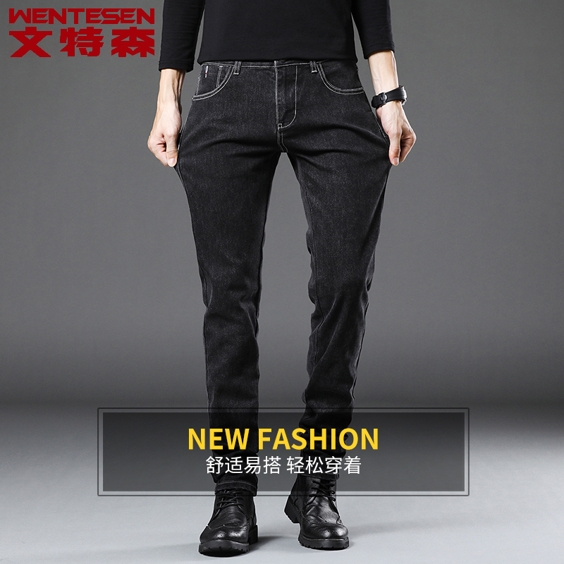 Black Jeans Men's Body Stretch Long Pants Spring Autumn Season New Korean Version Trend Casual 100 Hitch Young Men Pants Tide
