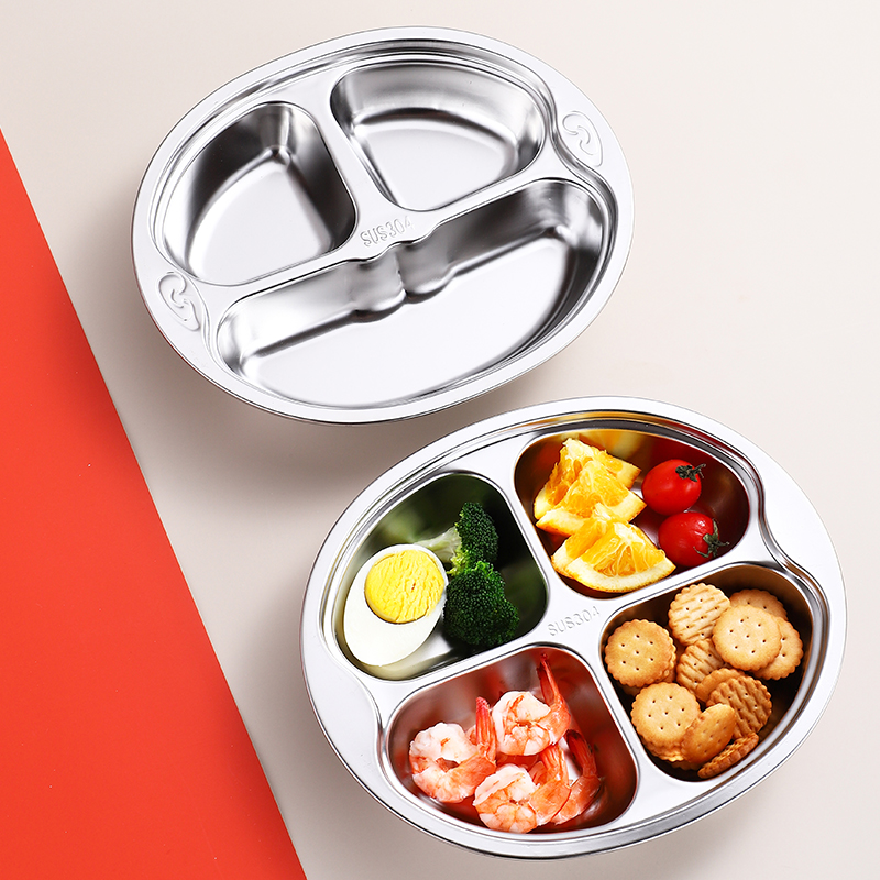 304 food grade stainless steel children's dinner plate kindergarten cartoon divided baby home anti-fall dinner plate fast food plate