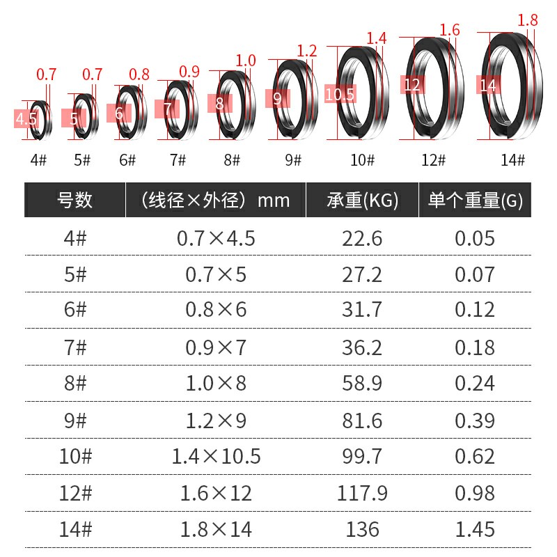 Stainless steel ring ring 4# (50) stainless steel ring ring 5# (50) stainless steel double ring ring 6# (50) stainless steel ring ring 7# (50 pieces) stainless steel double ring ring 8 #