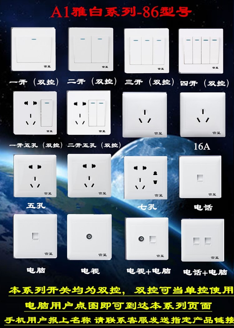 One-open double-cut 86 household concealed wall 1-open switch 1-position double-open double-cut switch Yabai