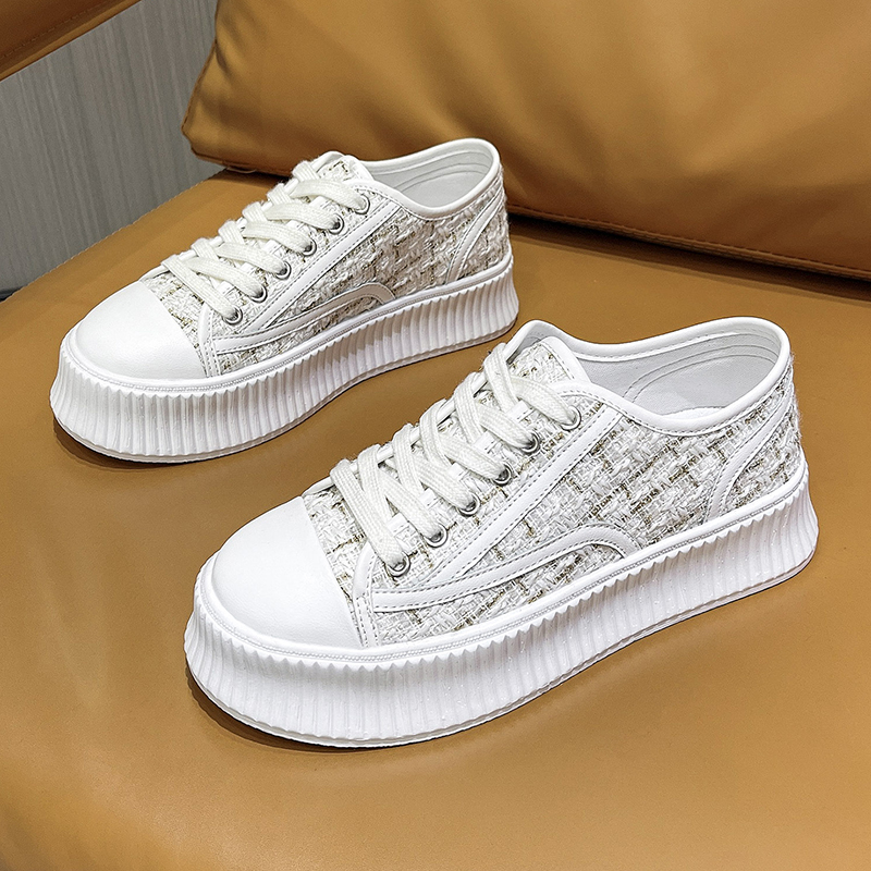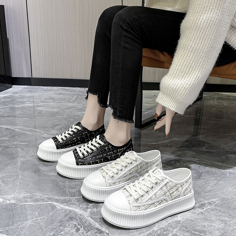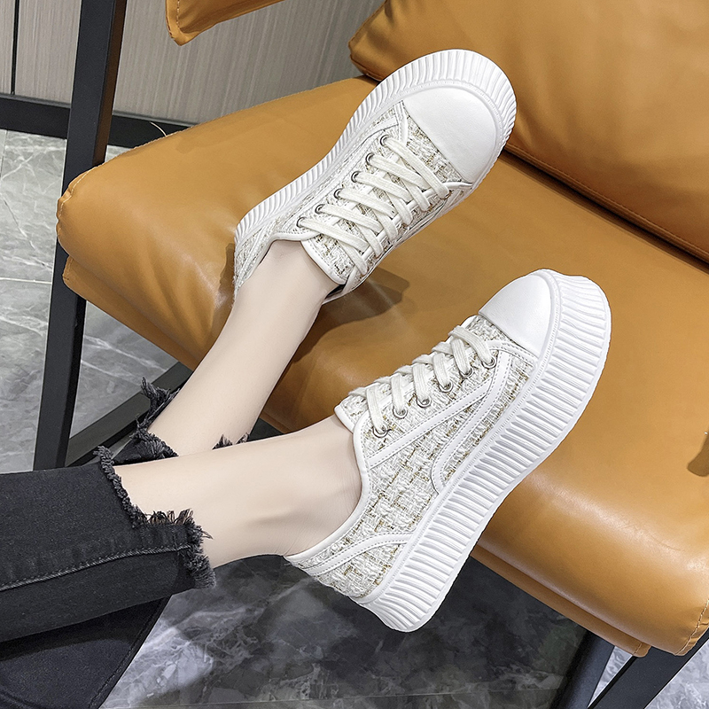 Xiaoxiangfeng biscuit shoes women's spring 2022 new fashion thick bottom heightened muffin casual canvas shoes small white shoes