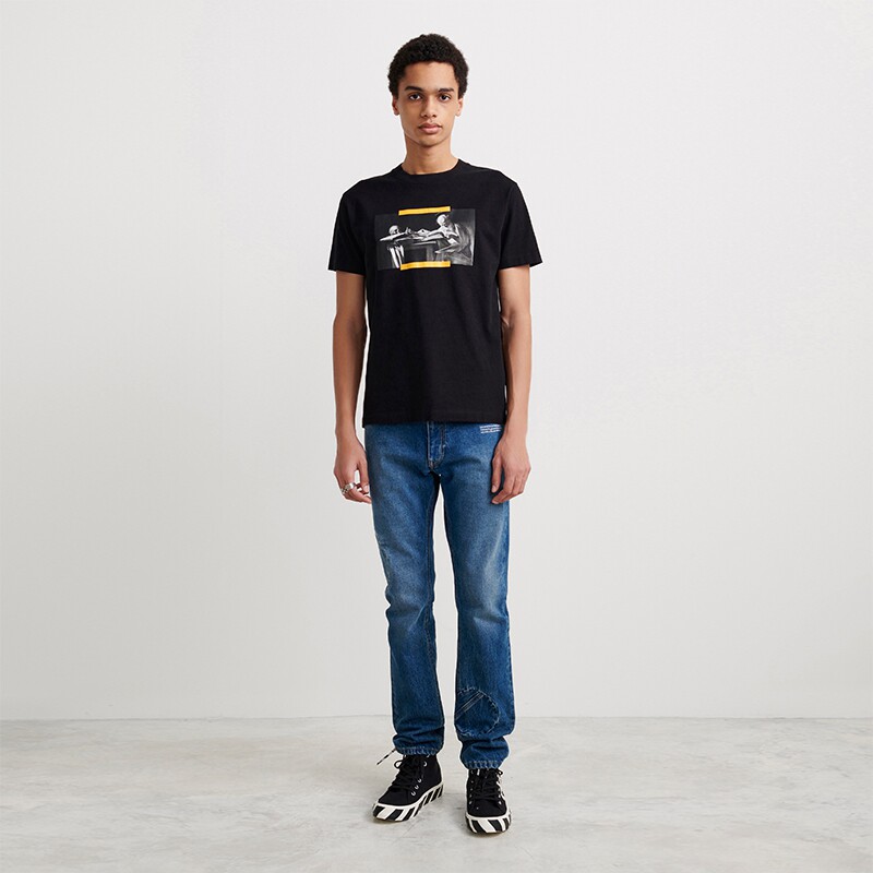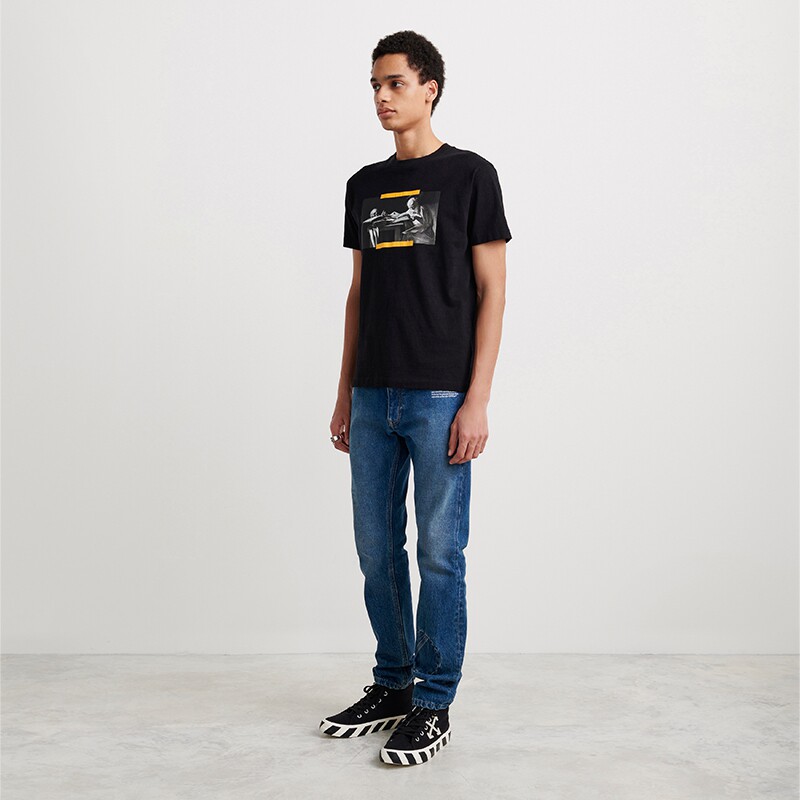 OFF-WHITE Men's Black Caravaggio Oil Painting OFF Logo Short sleeves Body Round T-shirt