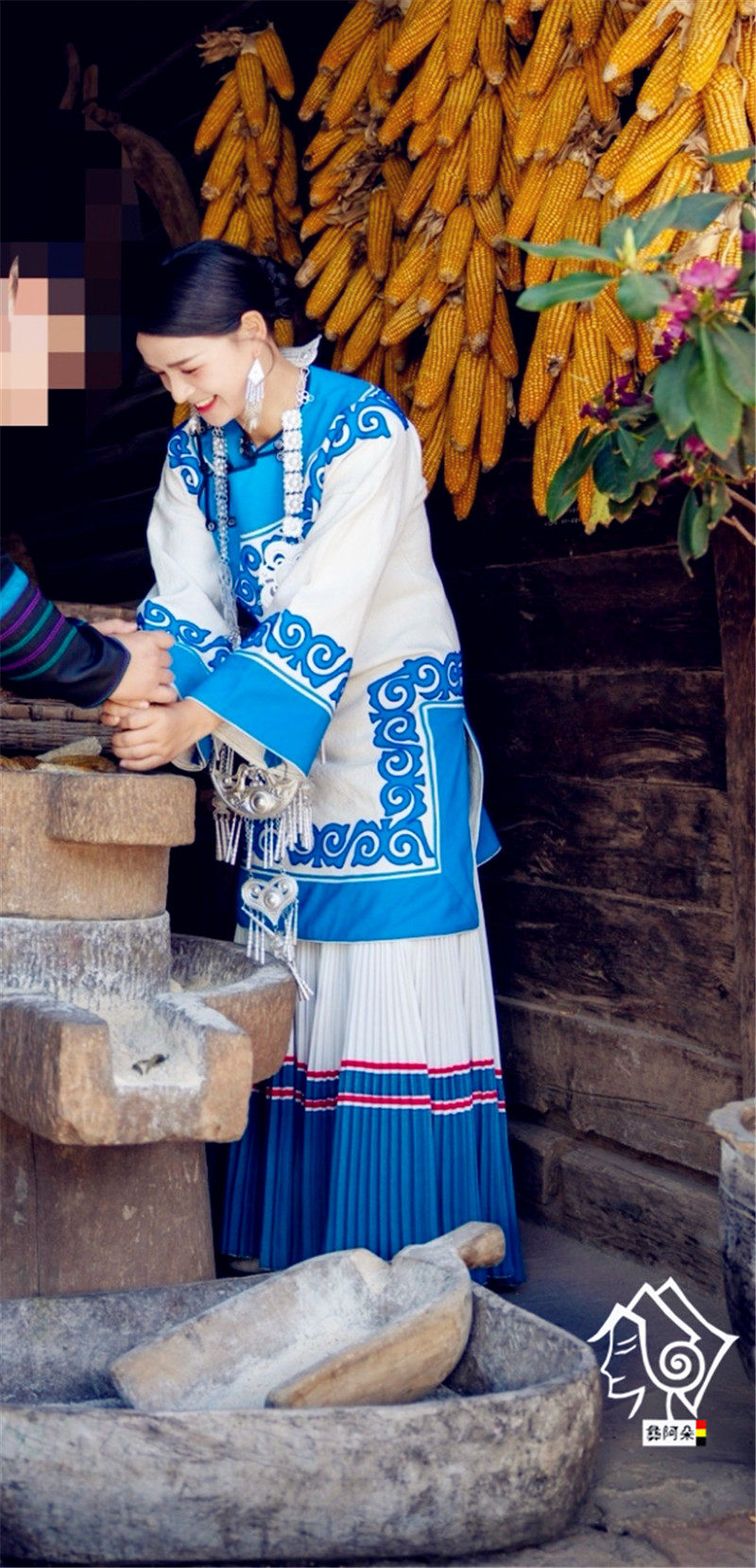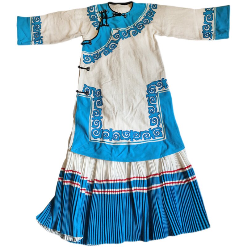 Cool Mountain Yi Clothing Women Suit Lake Blue Cotton Linen Traditional Hand Embroidered Retro National Wind Dress Photography Clothing