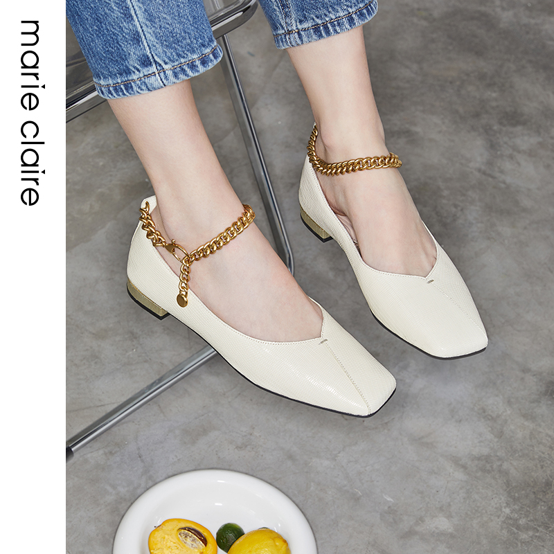 MC Paris Women Shoes marieclaire2022 New Style Square Bottom Genuine Leather Chain Mary Rare Shoes Single Shoes