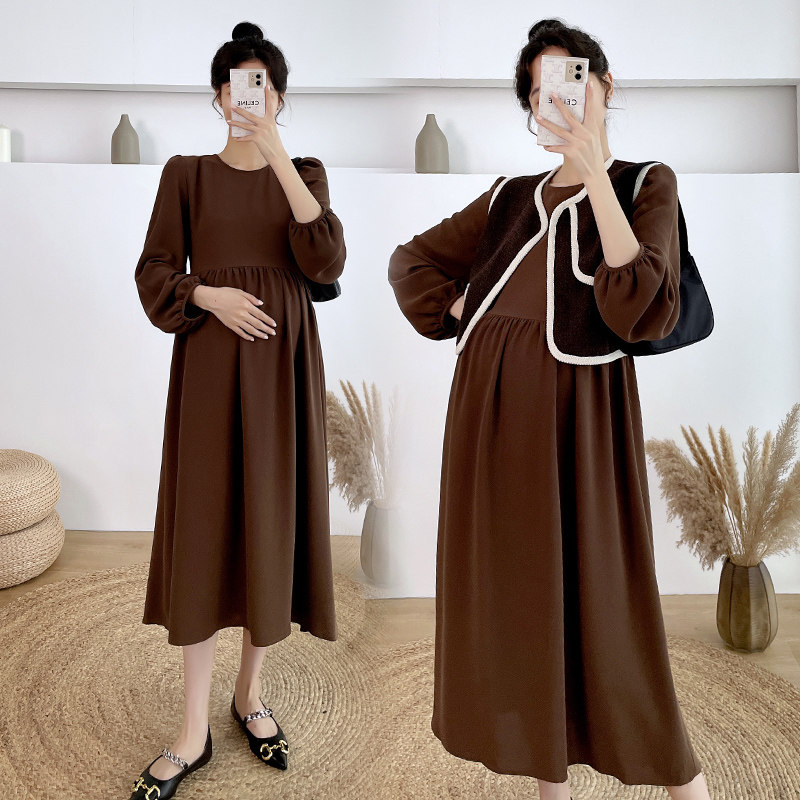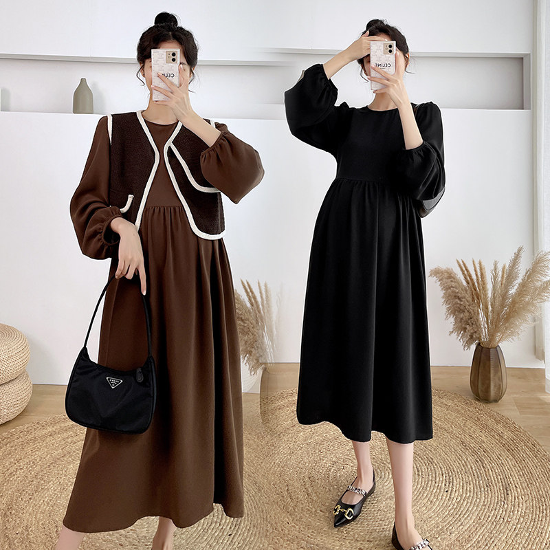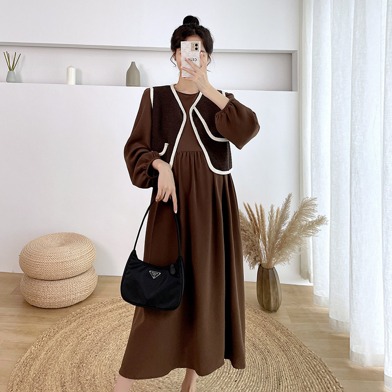2022 Spring and autumn clothes new Korean version of pregnancy women's clothing loot two-style foreign pie Machia suit Fat MM Long dress