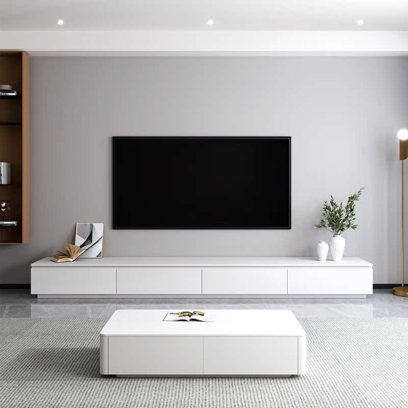 White Simple Modern Floor Tea Cabinet Co., Ltd. All-thin Nordic Living Room Station Ultra-thin Narrow Household TV