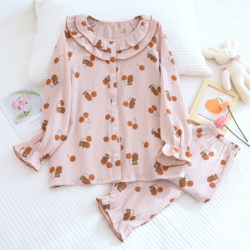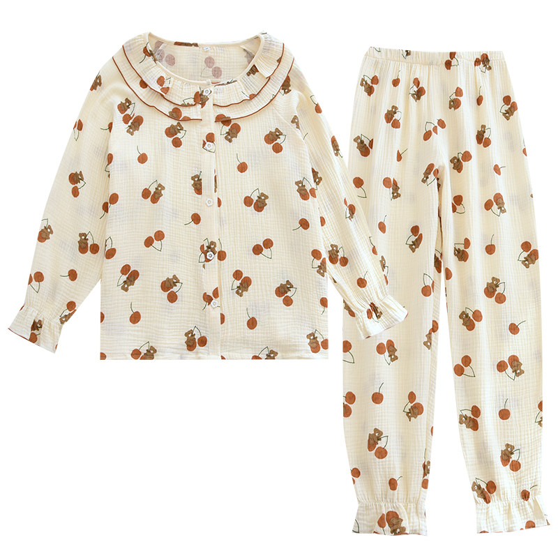 Day Department Cotton Cotton Pyjamas Woman Spring Autumn Double Layer Pure Cotton Cotton Cloth Round Collar Home Wear Autumn New Home Suit Suit Thin