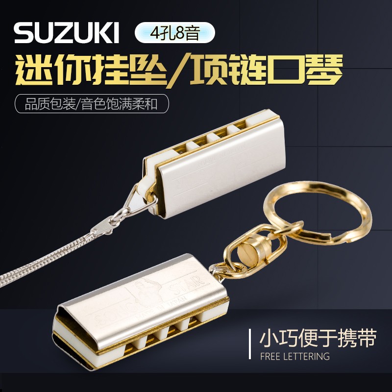Japan Made Suzuki Suzuki 4 holes 8 Sound Mini small harmonica Pocket Necklace Pendant Girl Student Gift