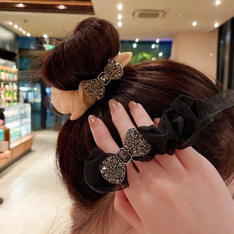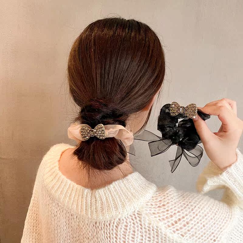 Korean net red hair ring senior organza large intestine hair ring bow temperament hair ring rhinestone rubber band female head summer