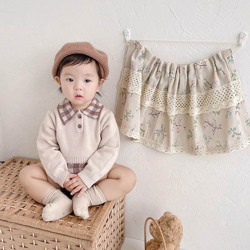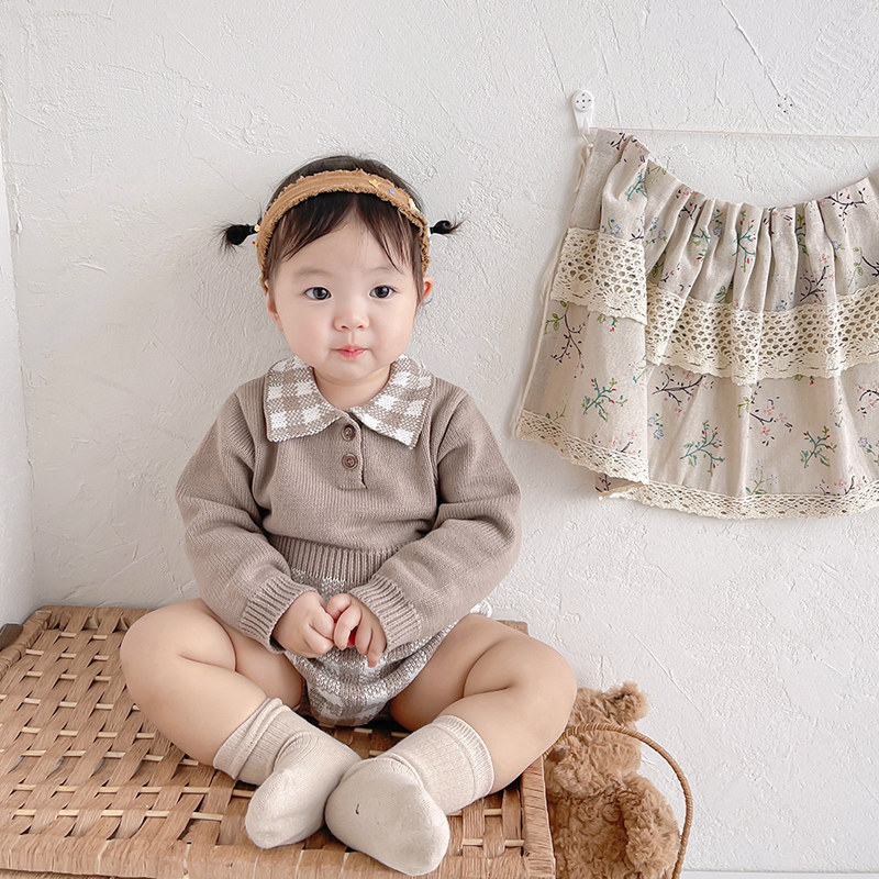 ins baby clothes spring and autumn knitted jumpsuits for men and women baby super-foreign sweater pack fart romper romper