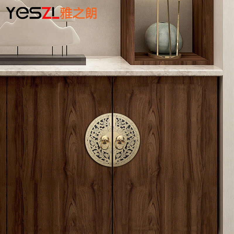 Elegant Chinese style handle cabinet door New Chinese pure copper drawers brass wardrobe imitation ancient integral cabinet ancient bronze color handle
