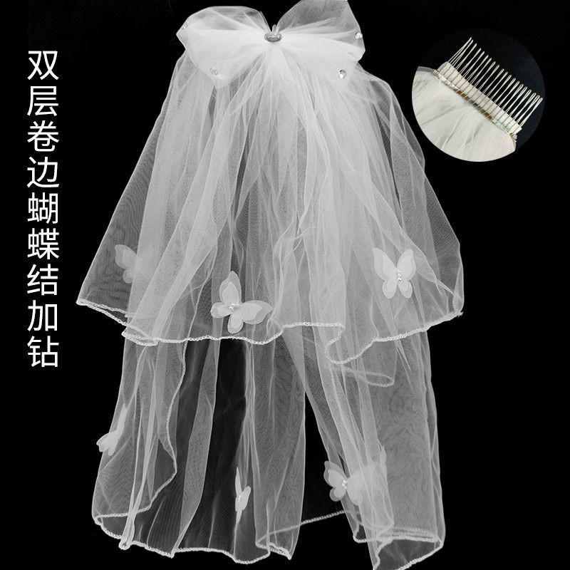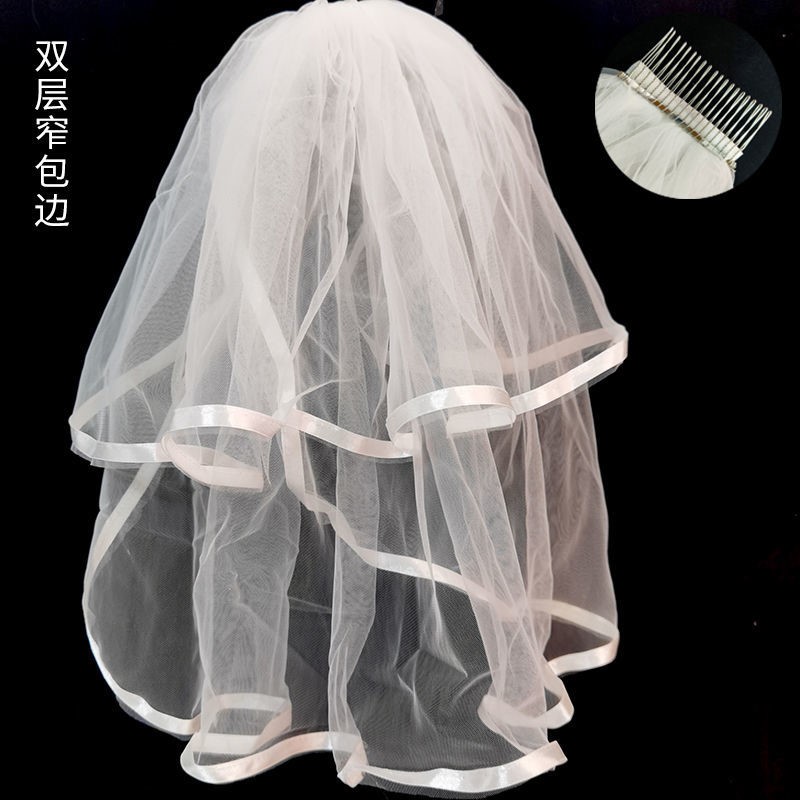 White double-layer naked yarn 40-50 plus hair comb White double-layer bare yarn 40-50 plus hairpin white double-layer large lace 40-50 plus hair comb double-layer narrow wrapping 40-50 plus hair comb double-layer satin