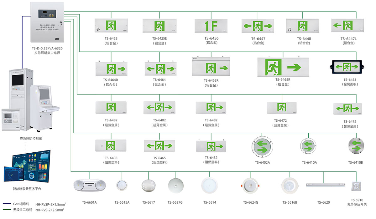 Tai and An concentrated power supply control type fire emergency lighting luminaire suction top insert wall type evacuation lighting indicator light