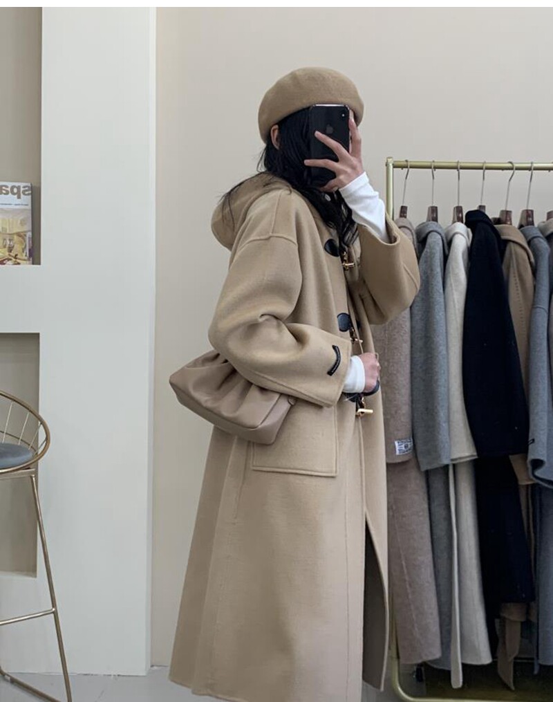 The new Han Cashmere Double - sided Cashmere Coat Woman in 2021 is a new Korean edition of loose hair coat woman