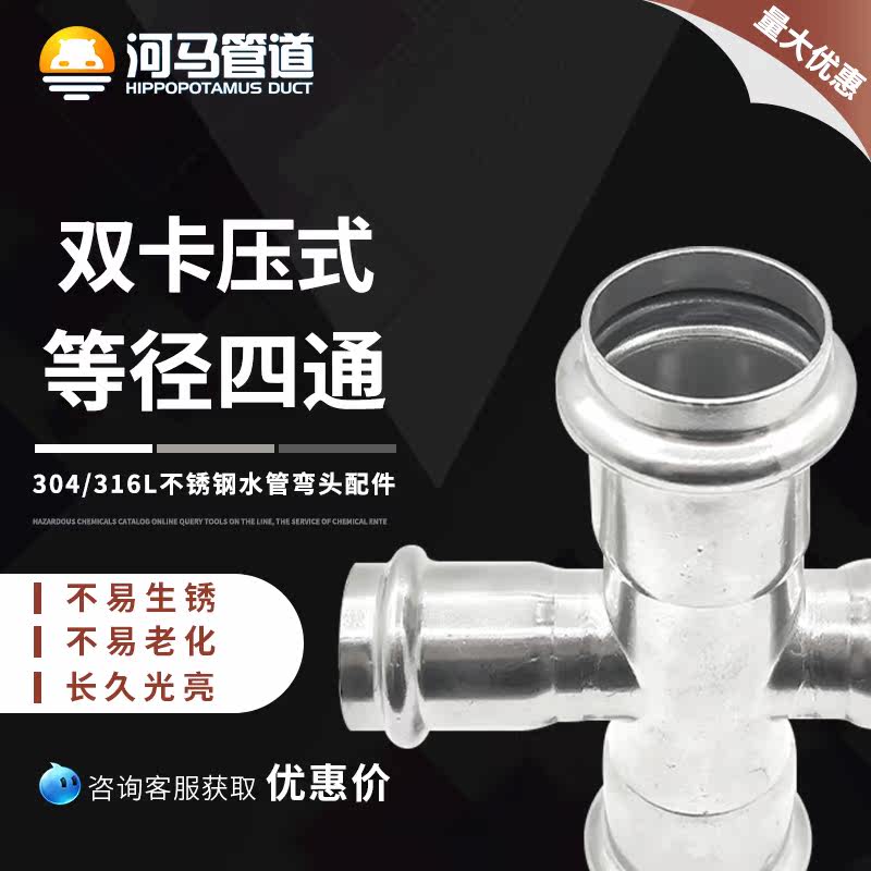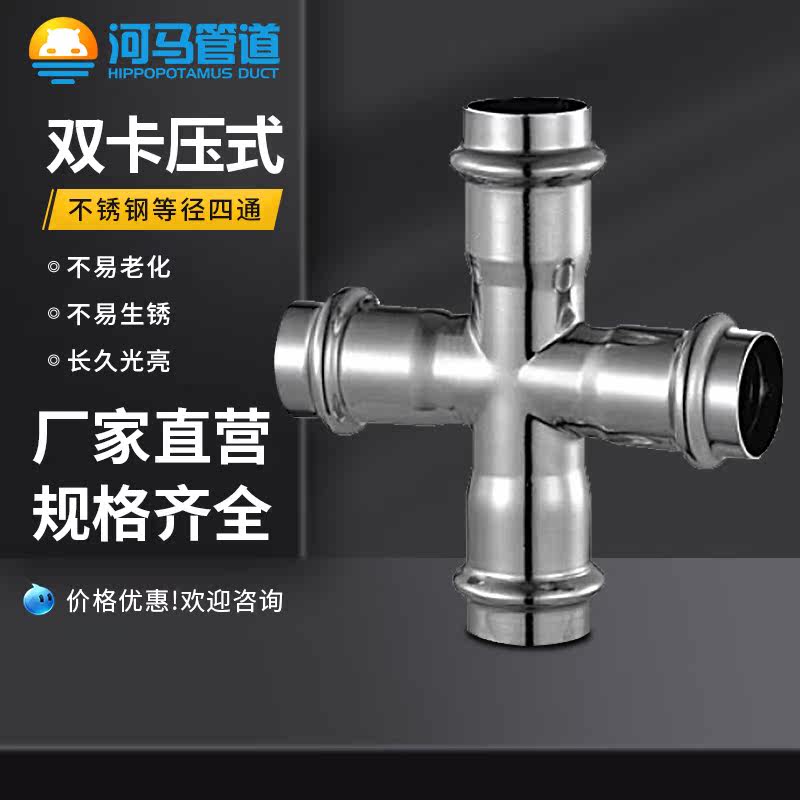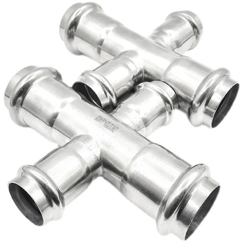 304 stainless steel equal-diameter four-way water pipe joint 316 double card pressure cross four-point right-angle four-way water pipe fittings