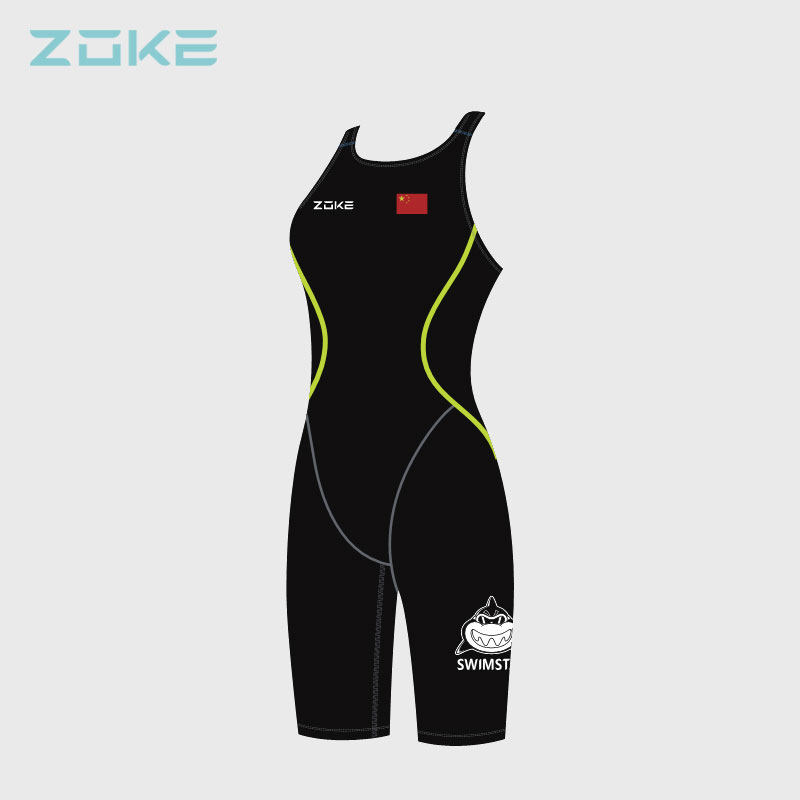 Zoke Zuke Professional Competition Training Linked Five-point Lady Pure-colored Steel-free Close Sports Swimsuit