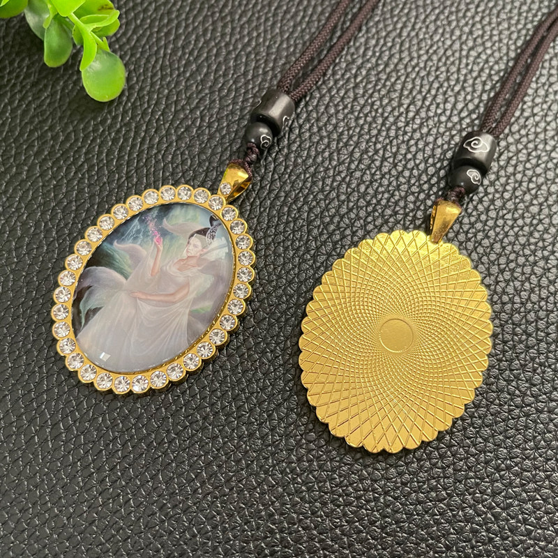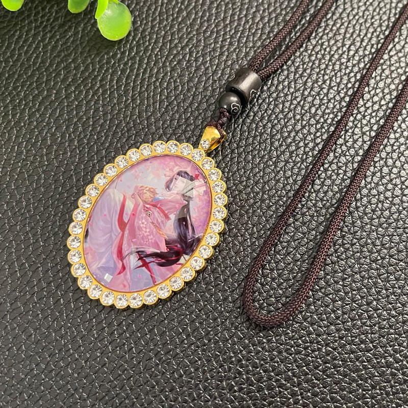 Nine-tailed fox diamond-studded sandalwood necklace antique pendant pendant pink blue red blue white yellow mysterious small fox jewelry for men and women