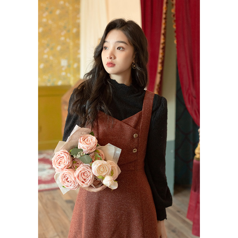 Juku Red Ocean Dress Woman 2021 Winter new harness Harness Baby Bag Skirt Mid length Temperament Skirt Small