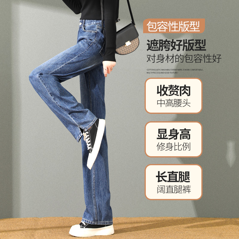 Wide-leg jeans women's loose spring and autumn 2022 new split pants high-rise drape feeling thin mop straight pants