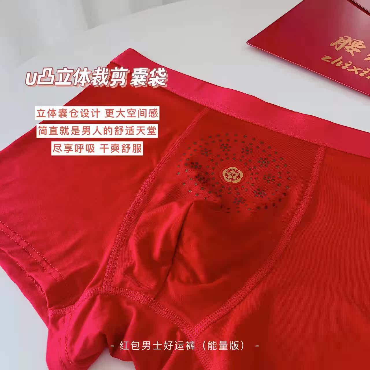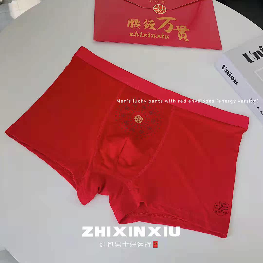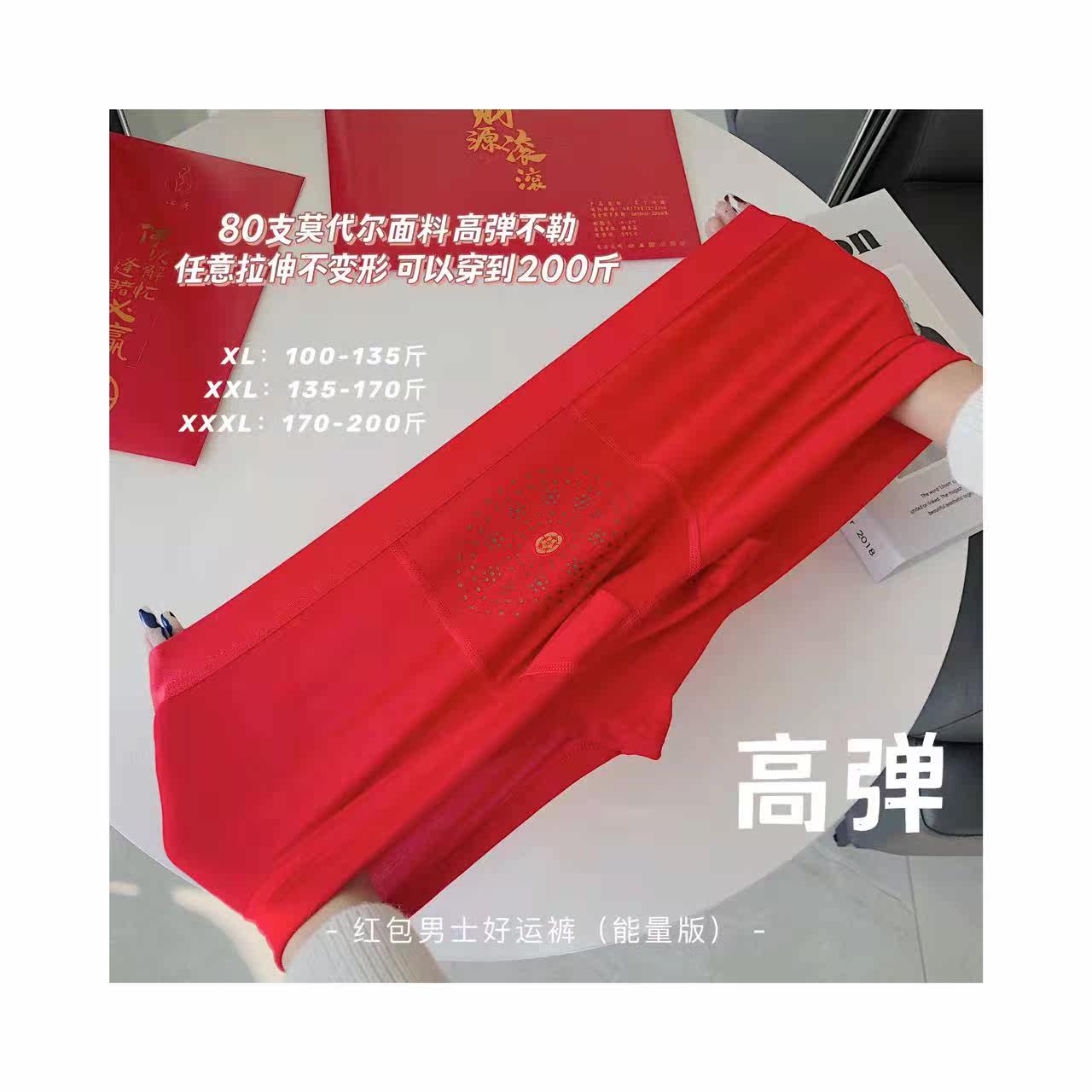 Red envelope men's good luck pants are red and festive New Year's year, underwear, comfortable modal, middle and high waist boxers