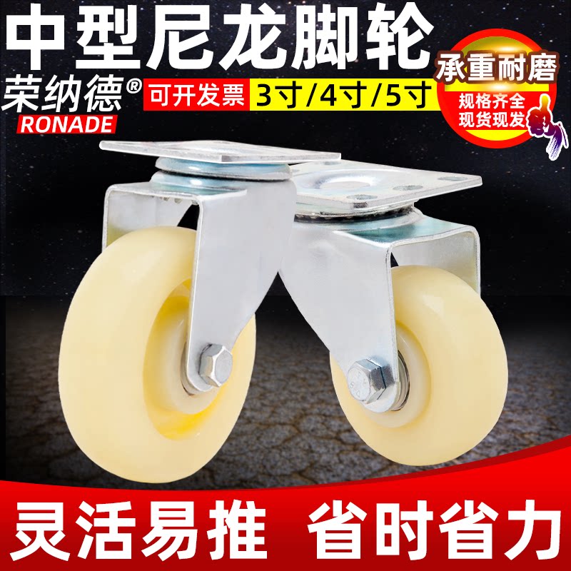Ronard 3-inch dual-bearing nylon universal wheel 4-inch 5-inch brake directional wear-resistant acid and alkali casters